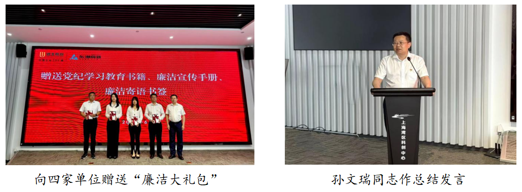 6月14日,“清風萬里行”走進上海灣區科創中心,大家濟濟一堂開展黨紀學習教育活動。集團紀檢工作部部長助理張帆以《恪守“六大紀律”,筑牢思想根基》為題,生動宣講黨的紀律處分條例,引導黨員干部職工培養紀律自覺、筑牢思想防線。集團紀檢工作部干事、紀律教育和廉潔文化宣講團成員肖晶誦讀一首毛主席詩詞《卜算子·詠梅》,重溫詩詞背后革命先輩敢于直面困難、勇于戰勝困難的光輝歷史。環保水務專職紀檢委員高殿鵬、科技園上海公司敖犖、金州水務上海公司趙蓮、上海泰欣茅玉賢、環保大氣太倉公司李曉紅作為學員代表,逐一登臺分享黨史中的紀律小故事,以小見大、以點帶面,感悟初心使命,傳承紅色基因。集團紀委委員、園區運營黨總支專職紀檢委員、紀律教育和廉潔文化宣講團團長姜玉林教唱紅歌《三大紀律八項注意》,引導參會人員在音樂中與歷史對話,叩問初心、澄清思想。智園科技品牌主管、“五彩廉”品牌形象大使熊珂將自創廉潔書畫作品《廉潔道路 勿失方向》《蓮因潔而尊 人因廉而正》贈給參會的4家單位,并分享創作思路,促進提升廉潔從業意識,營造風清氣正良好氛圍。集團紀委還為上海區域項目干部員工贈送由廉潔宣傳手冊、書籍、廉潔寄語書簽、黨紀法規測試卷組合而成的“廉潔大禮包”,推動“自主學+集中學”雙向發力。