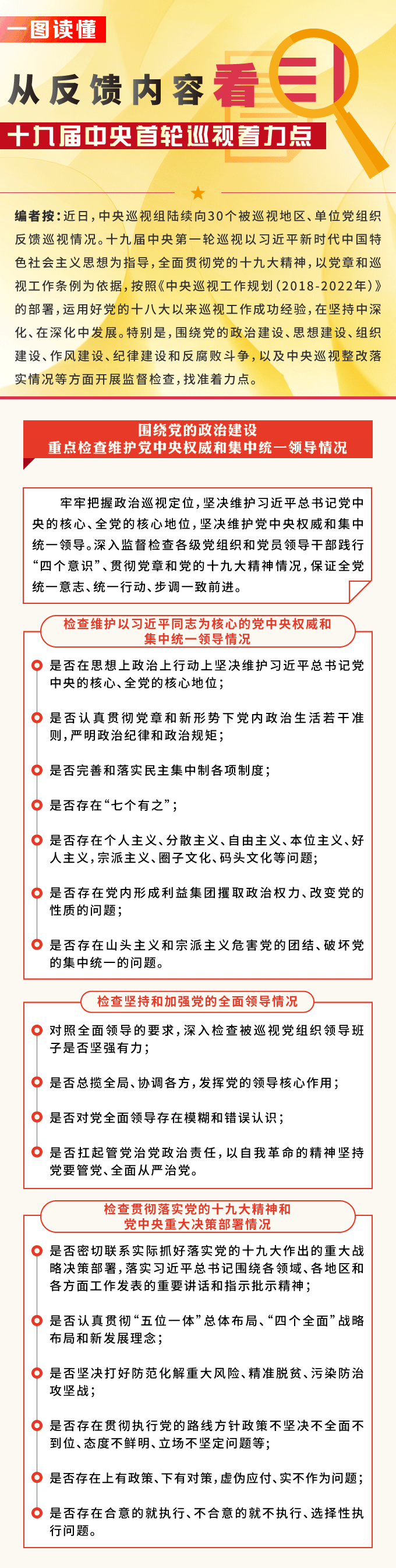 【一圖讀懂】從反饋內容看十九屆中央首輪巡視著力點